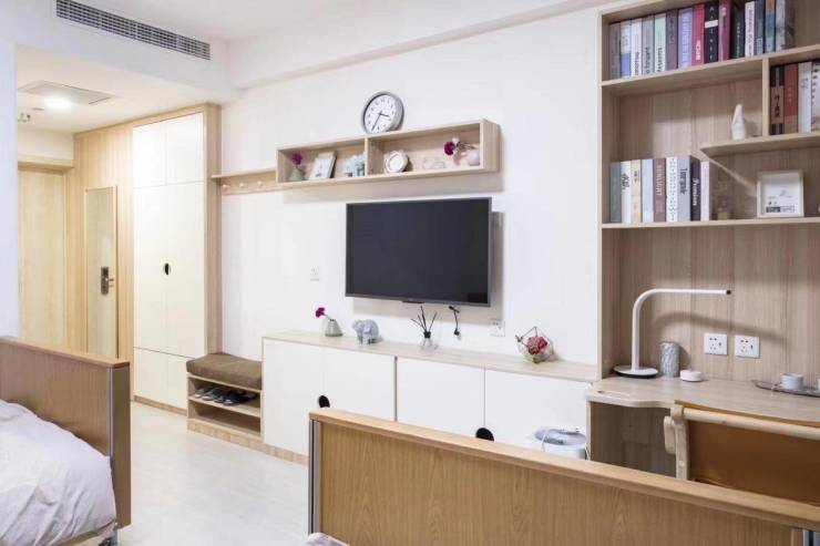 房间配套直接拉满:60寸LED电视、冰箱、一键呼叫床头、防护型卫生间,集中供暖+冷暖空调+新风系统,冬暖夏凉还透气,细节拉满❤️