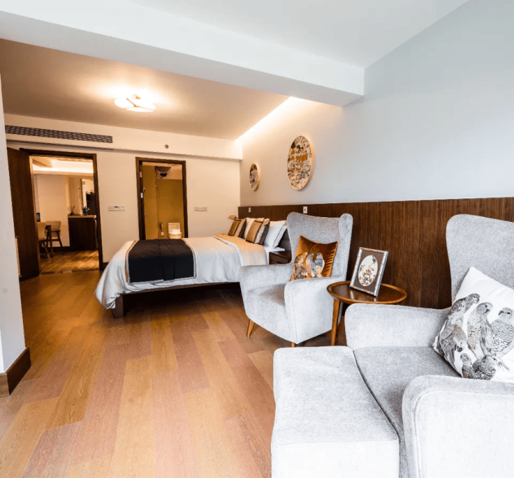 作为新华保险全资子公司运营的高端养老公寓,项目位于西三环核心区域,毗邻莲花池公园,周边五公里内有九家三甲医院。建筑面积 24000 平方米,设计床位约 360 张,配有 1500 平米的屋顶花园。公寓内设二级康复医院,提供专业医疗护理、康复训练及生活照护服务。采用智能化科技,配备直饮水系统、抗霾新风过滤系统、智能护理呼叫系统等。主要面向失能、半失能、失智及高龄自理长者,提供全方位、深度的生活照护。