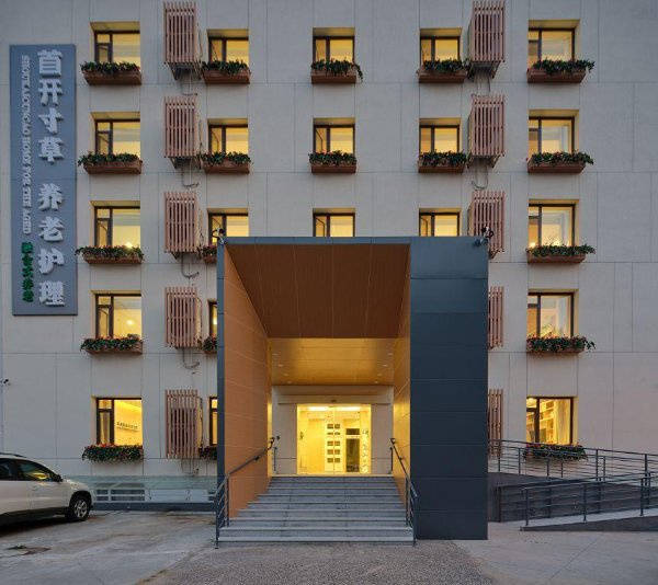 首开寸草望京院是首开寸草公司推出的第三家机构,2020 年 1 月投入运营,建筑面积 4232.10 平方米,设置床位 87 张,以单人间为主、双人间为辅,2021 年被评为四星级养老机构。机构采用全院无障碍适老化设计,配有医务室、运动康复区、公共活动区、屋顶平台、户外独立小院等空间。房间配置巴乐梦护理床、睡眠监护床垫、床头及卫生间呼叫器,每个房间均设新风系统,仿木纹防滑地胶确保安全。机构以 “融合式养老” 为理念,打造生态与人文双角度的 “会呼吸的养老院”,墙面手绘、水培蔬果、小型蔬菜盆栽营造盎然春意,还设有 “活态博物馆”“燕京图书馆”“春晖供销社” 等人文景观,并引入宠物疗法丰富老人精神生活。