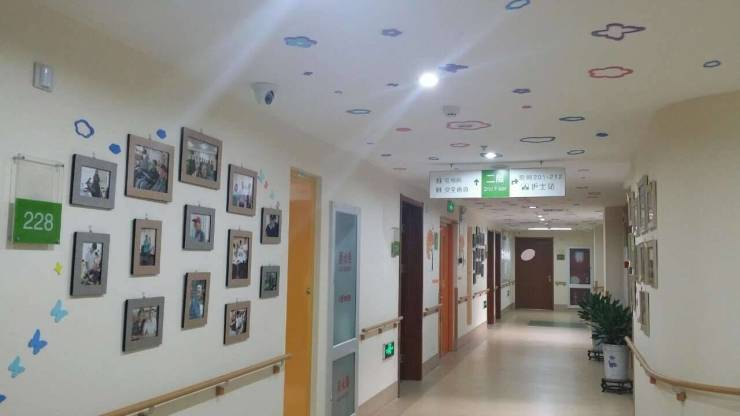 设施打造兼顾适老安全与人文氛围,对老年患者及终末期群体极为友好。病房采用幼儿园式温馨布置,搭配防滑地板、安全扶手等适老设施,每间配备无障碍卫生间、家具家电及氧气管道,全方位保障患者安全与舒适。整体呈现中国古典园林特色,廊檐石阶、古钟佛像与自然景观相融,替代传统医院的冰冷感,为长者提供宁静惬意的休养环境,助力缓解心理焦虑。