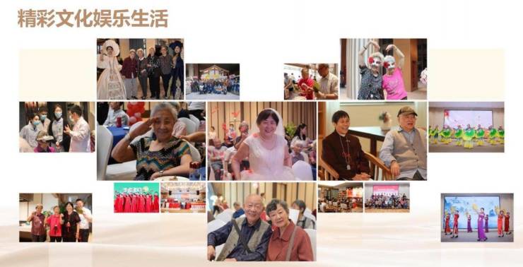 动静相宜:动以修身——歌舞,太极,游泳,迷你高尔夫、健身;静以养德——琴、棋、书、画;大型活动——社区定期组织大型节日庆典、每月集体庆生、特定活动策划。