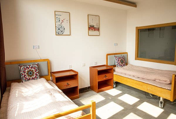 设施特色:紧临龙潭湖公园、兆佳商场、鼎泰市场等。中心占地面积2000多平米,共两层,拥有33间带独立卫浴功能的双人间,配有独立卫生间,卫生间门加宽处理,方便坐轮椅老人进出;配有两张专业双摇护理床,每个床位配备一个床头柜、一个衣柜;床旁配呼叫系统;为失能老人配充气护理床垫,24小时充气,确保通风,防止褥疮。