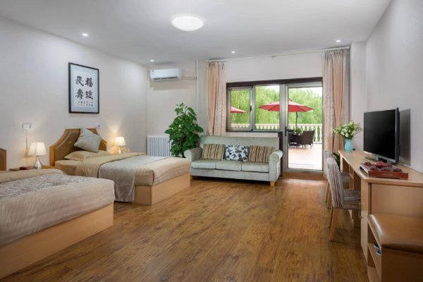 依托乐成养老17年的品牌深耕与专业积淀,半壁店恭和苑以医养结合持续照料、认知照护为核心特色,为长辈打造全方位、高品质的养老生活。机构总建筑面积约12950平方米,规划203间客房、398张床位,涵盖双人房、单人房及日间照料床位等多种房型,精准匹配不同长辈的照护需求,兼顾私密性与舒适性。