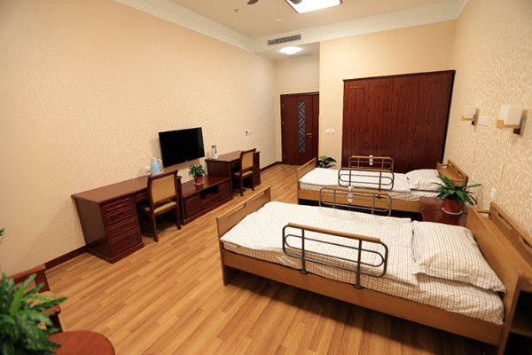 北京市朝阳区吉祥苑养老公寓占地面积8600平米,建筑面积5900平米,设有单人间、大/小双人间共计130间,可满足不同长者居住需求。房间内家具、电视、电话、冰箱等各类设施一应俱全,所有家具及地板均为实木材质,环保安全无异味;配备定制版电动护理床、适合老年人的棕垫床垫等,提升居住舒适度。每个床头及卫生间配备语音呼叫系统,独立无障碍卫生间、24小时热水等适老化设施齐全,全楼无线WiFi覆盖、直通新风系统,常年保持舒适温度。