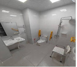 该中心集居家、社区、机构养老于一体,设 57 套房间、121 张护理型床位,所有房间朝阳且配备适老化卫浴、遥控护理床、地暖及智能安防系统。五楼设空中花园,公共区域含医务室、评估室、康复室、多功能厅等。护理团队提供 24 小时个性化照护,与周边医院建立绿色就医通道,并开展物理治疗、作业治疗等康复服务。定期举办文化娱乐活动,满足半失能老人医疗与精神需求。