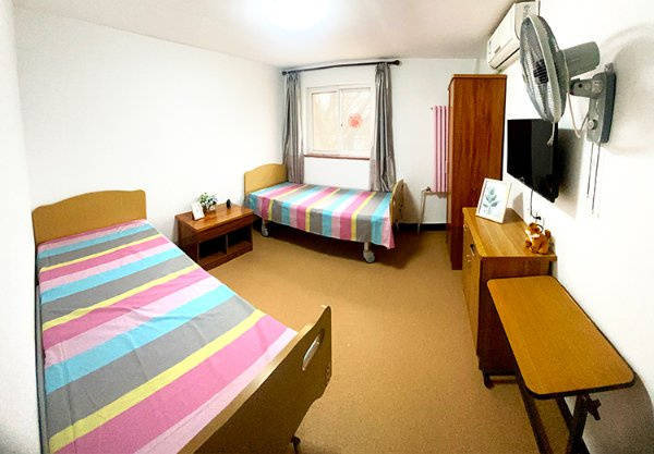 北京市大兴区寿山福海养老服务中心总建筑面积2万平方米,600张床位充足供给,避免床位紧张的困扰。房型面积30-60平方米,空间宽敞舒适,均配备家具、智能家电、无障碍卫浴系统、24小时生活热水与应急呼叫系统,细节处彰显人性化关怀。户外设有景观凉亭、健身道,步行可达康庄公园,日常休闲锻炼、漫步赏景皆适宜;室内配套电影院、多功能厅、书画室、阅览室、电脑室、棋牌室、台球室、健身房、茶室、会客室等,每层居住区均设有公共休闲区,满足长者多元休闲、社交与兴趣需求。