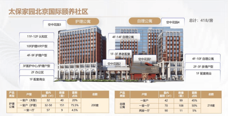 社区坐落于房山良乡大学城片区,环境优美,交通便捷,紧邻良乡大学城西地铁站,出行高效便捷。项目占地面积19043平米,建筑面积66000平米,由自理楼、护理楼、多功能厅等五栋建筑组成,规划开间、一室一厅、两室一厅等养老公寓297套,养老照料中心照护床位230张,最多可容纳1000余人居住。设施配备智能化、人性化,搭载IoT智能家居设备,完善的运营管理系统、数字化安全防控系统、多维度环境舒适度控制系统、防走失定位报警系统等全覆盖,同时规划运动康健、艺术疗养、休闲交流、五星餐饮、宜老居住五大空间,家具倒角设计、座椅起身扶手、浴室暖风机等细节设计,全方位保障长者安全与舒适。